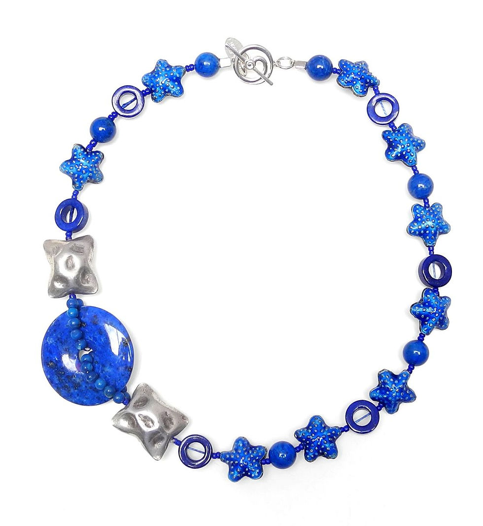 Brilliant Lapis Necklace with Silver & Blue Enamel Starfish